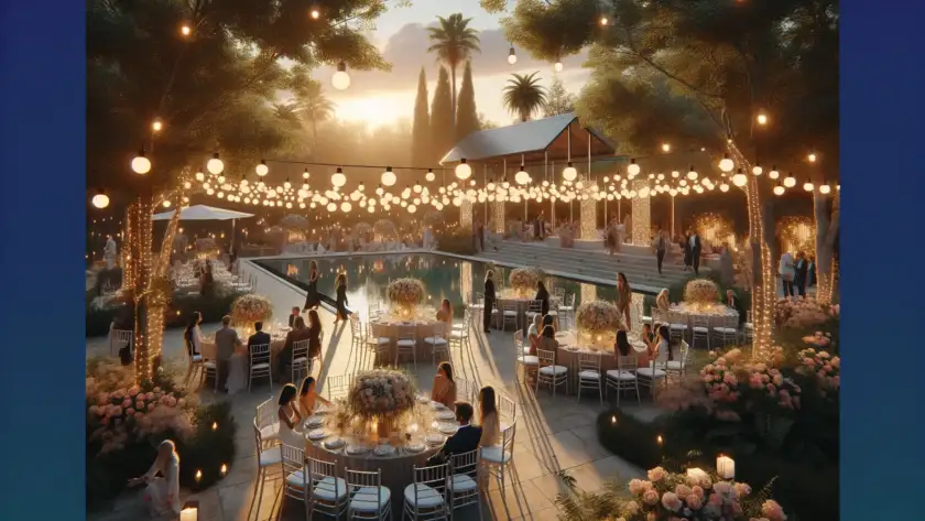 Pentru o nuntă în aer liber reușită trebuie să verifici 10 aspecte esențiale: planul B pentru vreme nefavorabilă, infrastructura sonoră potrivită pentru exterior, iluminarea suplimentară pentru seară, confortul termic al invitaților, protecția împotriva insectelor, stabilitatea decorațiunilor la vânt, gestionarea prafului sau a ierbii, sistemul de servire adaptat (catering outdoor) si acces facil pentru mobilitate redusă…